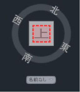 3)変更したUCS座標が画面上で水平垂直になるように表示させます。