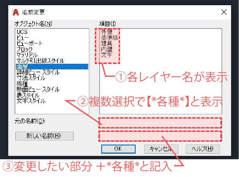 AoutoCADちょいテク⑤【レイヤー名の一括変更】