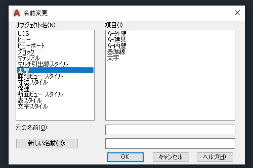 参考図面、下図図面など他から受領した図面はレイヤーの名前を変えたかったりすることが多々あると思います。