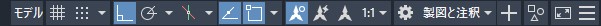 モデル空間とレイアウト空間を切り替えることができます。一般的には作図する際はモデル空間で行い、その後、作成した図面をモデル空間にてきれいに配置し出図(印刷)するという流れが一般的となります。